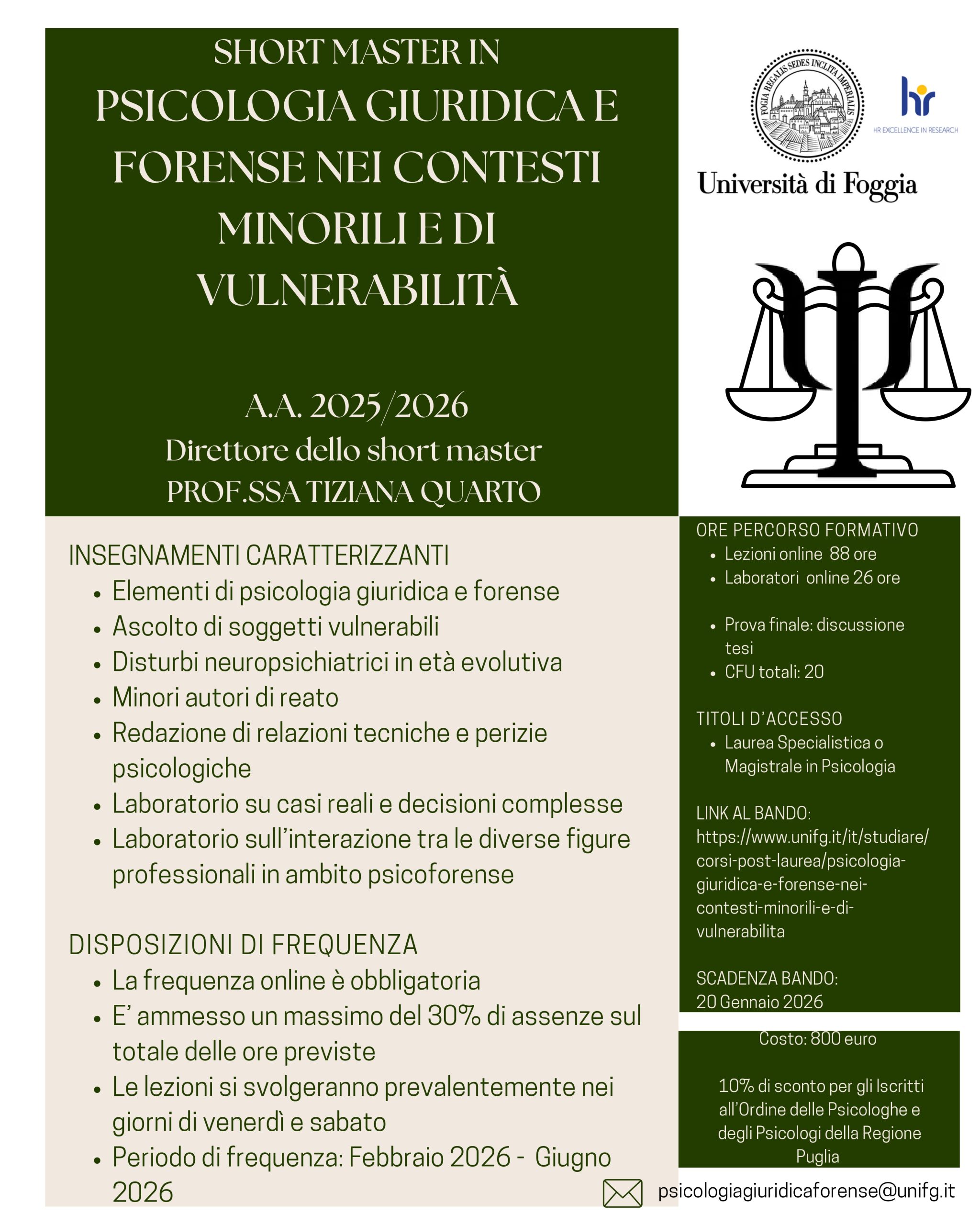 Presentazione dello Short Master UniFg in Psicologia Giuridica e Forense nei Contesti Minorili e di Vulnerabilità